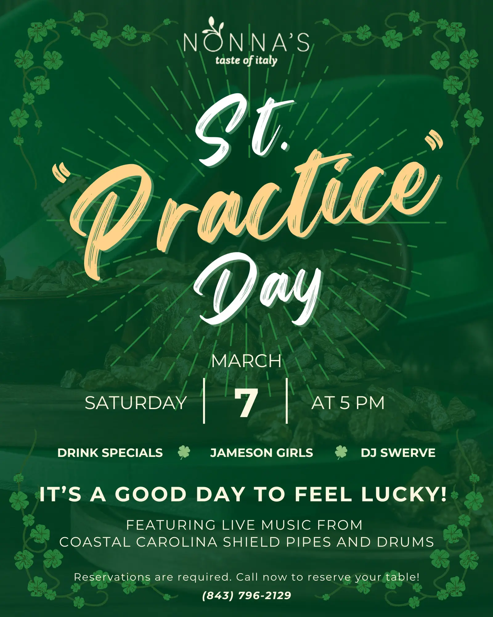 The only holiday you might need a little practice for! We’re not waiting until March 17th… we’re celebrating St. "Practice" Day at Nonna’s on March 7th at 6pm!! It's gonna be a good day to feel lucky!! Join us for a fun night of drink specials, live music, and more. Drink specials to fit the […]